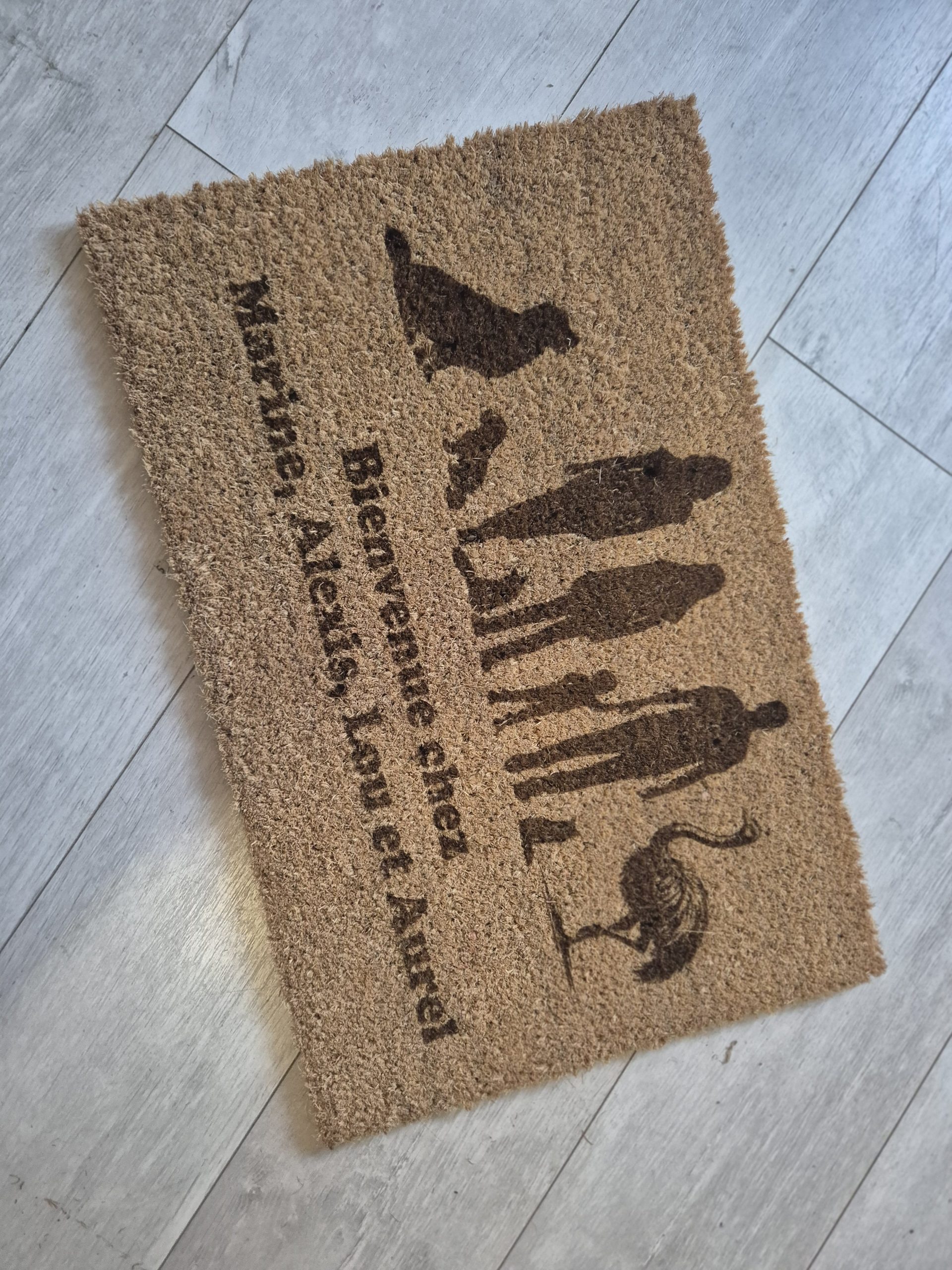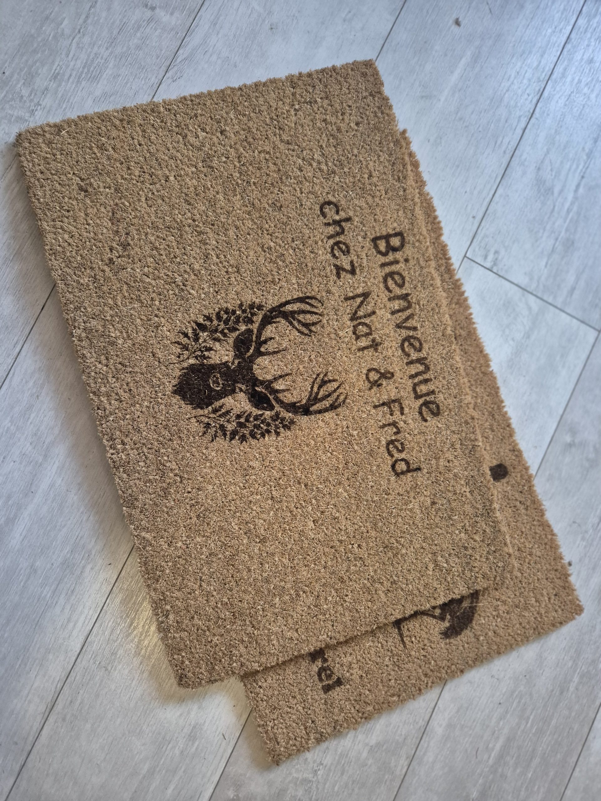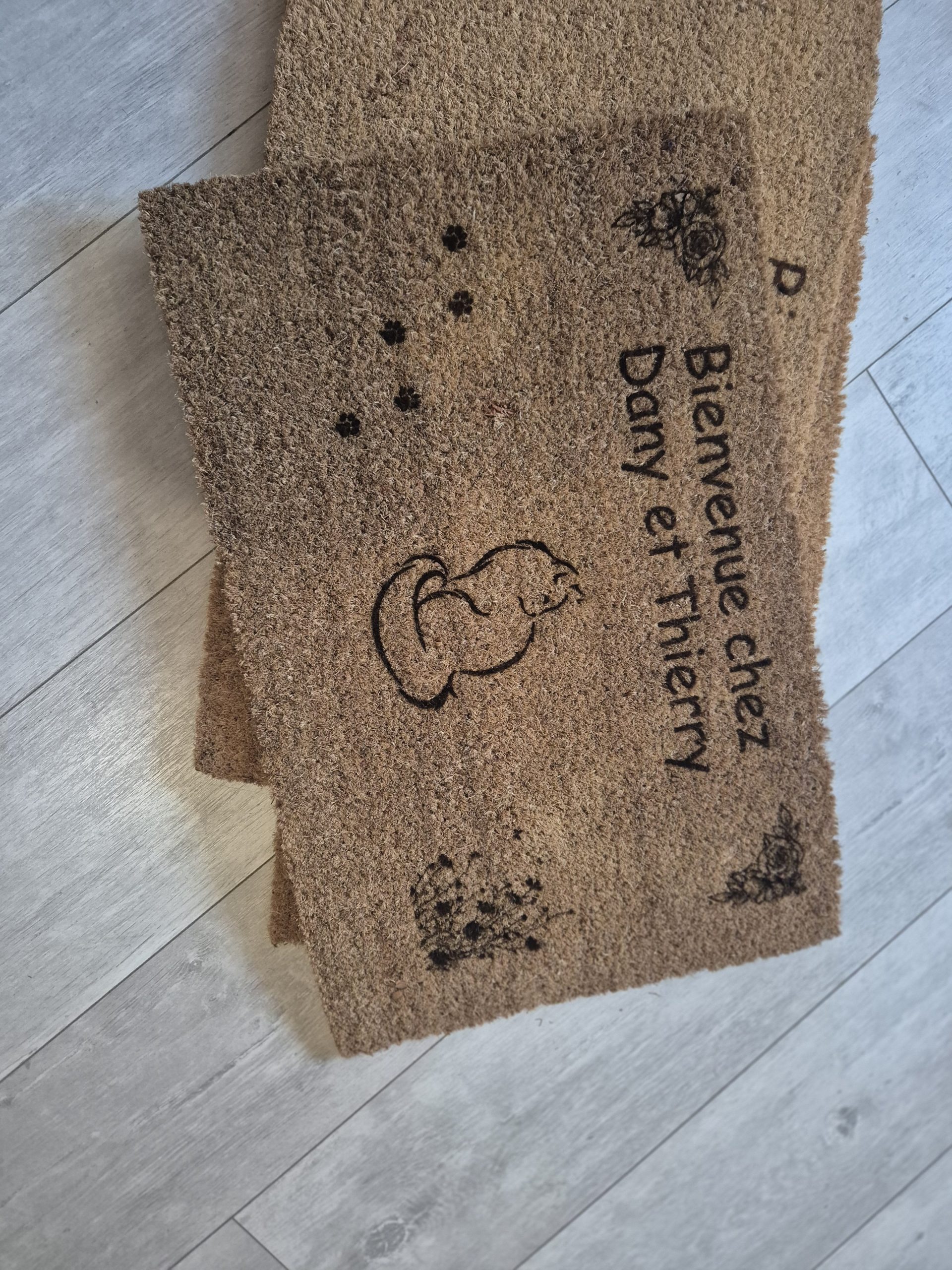 Vous cherchez un paillasson pour votre maison ? Vous pouvez ajouter des messages, des phrases ou même les empreintes de votre chien ou de votre chat 🙂